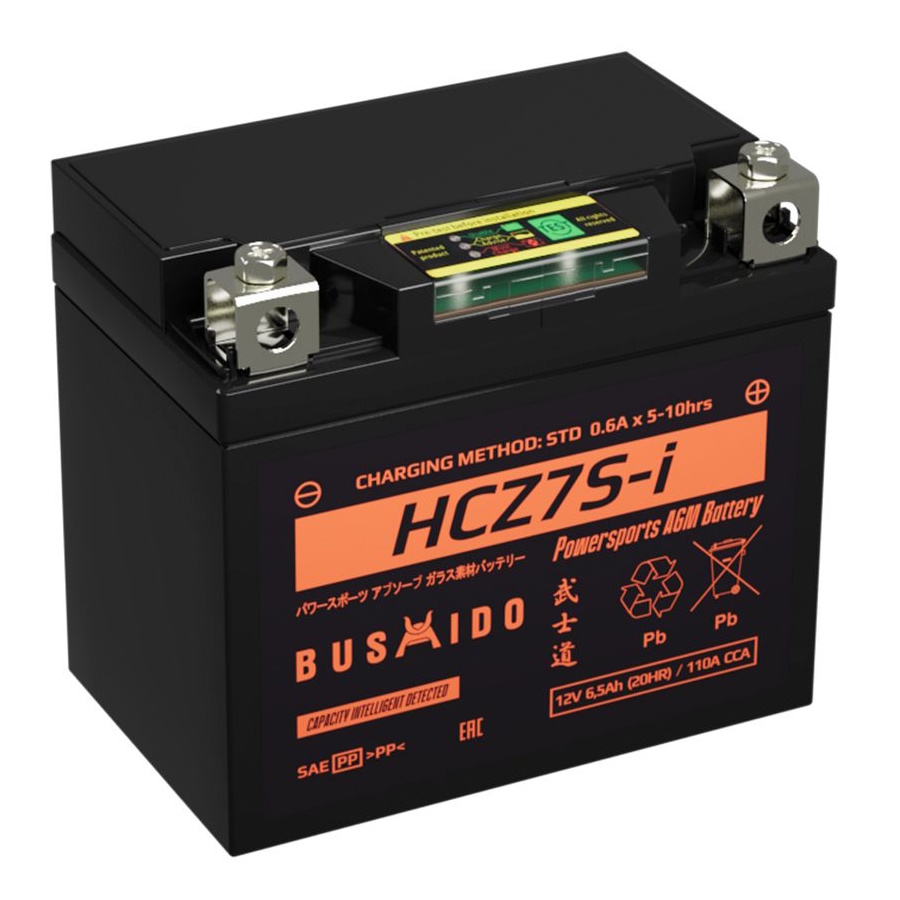 Мощный, надежный усиленный мото аккумулятор BUSHIDO HCZ7S-i (12В 6,5Ач 110А 113х70х105 мм) обратная полярность, с увеличенными пусковыми характеристиками произведен по технологии AGM и активирован уже на заводе. Полностью готов к эксплуатации, абсолютно безопасный, имеет максимальную виброустойчивость и внутреннюю защиту от коррозии. Есть встроенный мультиметр. Совместим: YUASA YTZ7S; TTZ7S-BS; YTX5L-BS; YTX5L-4; YTX5L; GS GTZ7S; GTX5L-BS; DELTA CT 1205; CT 1207.2; VARTA 506 909 010; 507 902 011; BOSCH M6 009; 0 092 M60 090; RBTZ7S-N.
